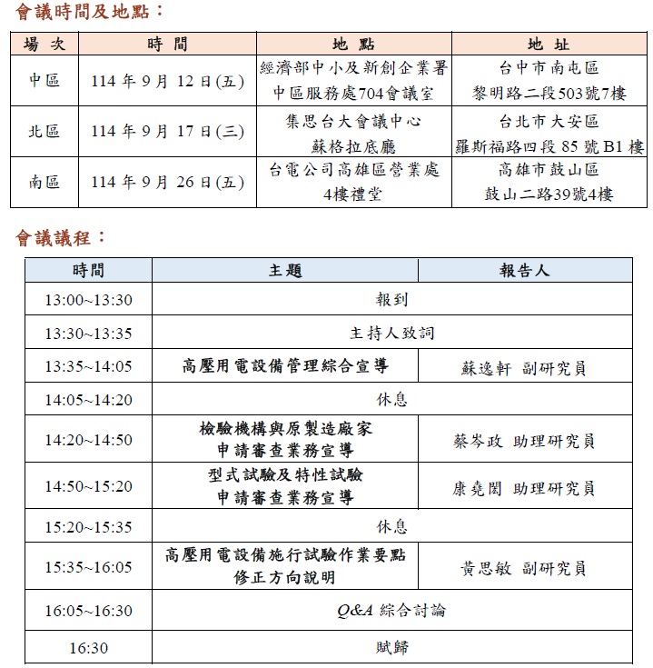 114年度「精進高壓用電設備管制方式分區座談會」-簡章(pdf)相關檔案下載(另開新視窗)
